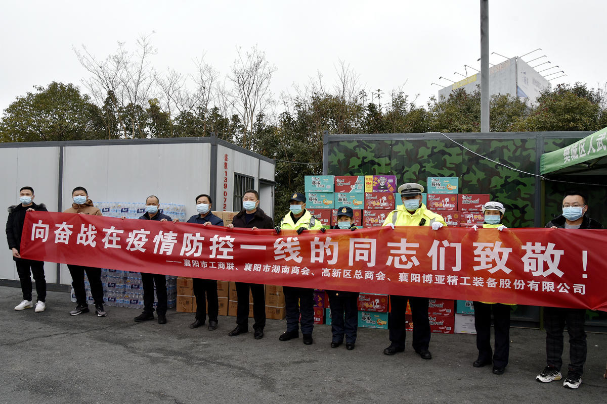 面對防控人員的辛勤付出,博亞不忘上市企業責任擔當,在公司李總親自部署下,于1月6日上午安排公司黨群工作人員,陪同市工商聯副主席金雁等領導,趕往襄陽北高速出口疫情防控點,看望慰問疫情防控一線工作人員,給他們送去礦泉水、方便面、取暖器等食用保暖物資,向他們表達博亞公司的崇高敬意,感謝他們為守護襄陽人民生命健康安全所做的努力和奉獻。
