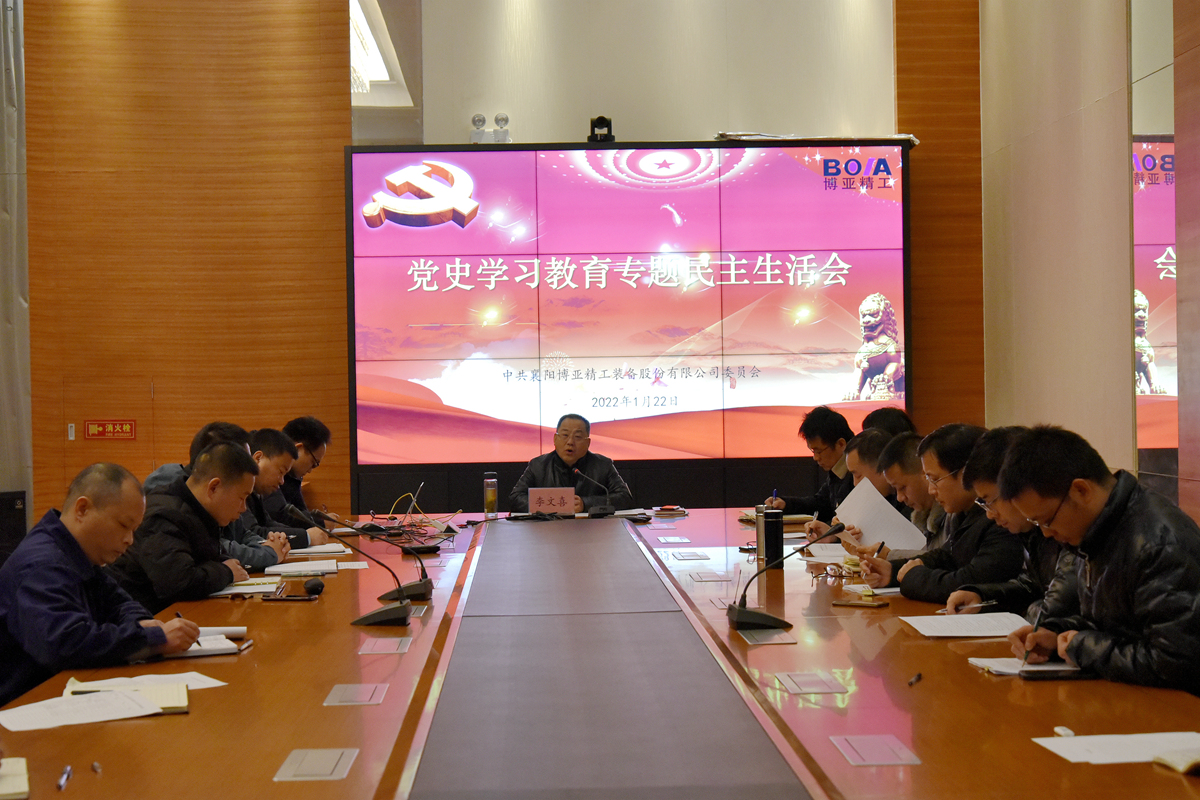 為鞏固拓展黨史學(xué)習(xí)教育成果,教育引導(dǎo)公司黨員干部深入學(xué)習(xí)貫徹黨的十九屆六中全會(huì)精神,深刻認(rèn)識(shí)“兩個(gè)確立”決定性意義,進(jìn)一步提高政治站位、統(tǒng)一思想認(rèn)識(shí)、振奮創(chuàng)業(yè)熱情,助推公司新年度高質(zhì)量發(fā)展。1月22日,公司黨委在總部313會(huì)議室組織召開(kāi)了黨史學(xué)習(xí)教育專題民主生活會(huì)第一階段會(huì)議。公司黨委書(shū)記李總主持會(huì)議,公司黨委委員、各黨支部書(shū)記和總監(jiān)以上管理干部參加會(huì)議。